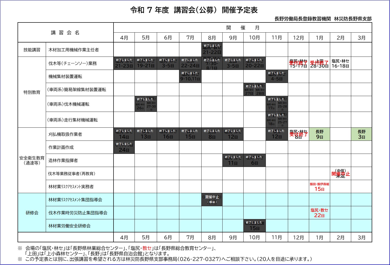 ※年間計画表に記載されていない講習の開催については、20名程度を目途に検討致しますので、ご相談ください。